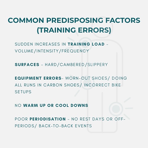 Sometimes these are obvious: the athlete suddenly jumped from running 20 km a week to 50 km, or the athlete turned their snazzy carbon racing shoes into daily trainers - classic examples of training load spikes or inappropriate footwear.